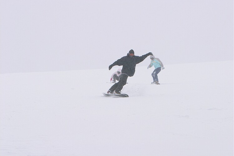 Snowboarder carves a turn