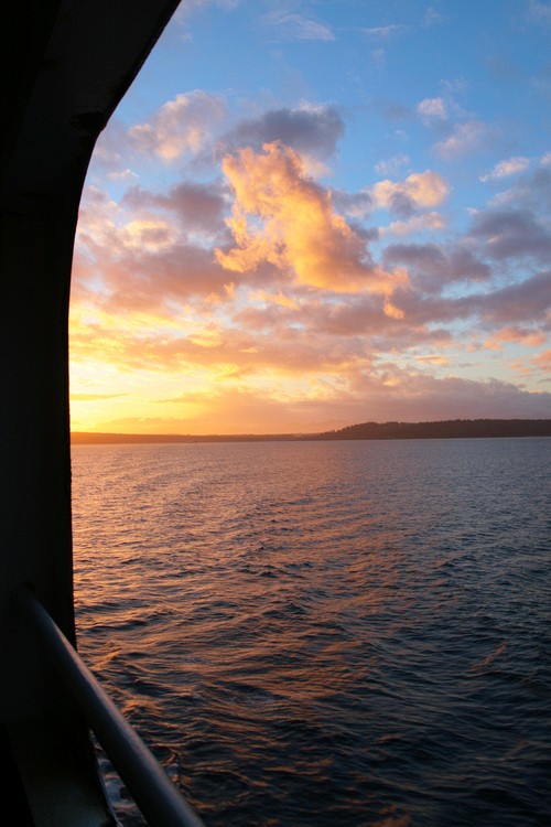 Puget Sound sunset, from MV Spokane