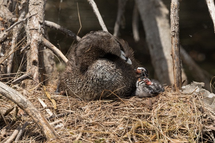 Parent grooming and chicks resting