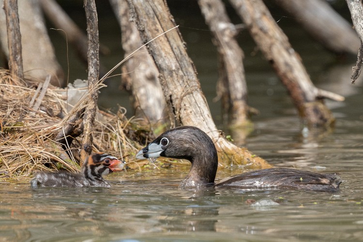 Parent feeding chick