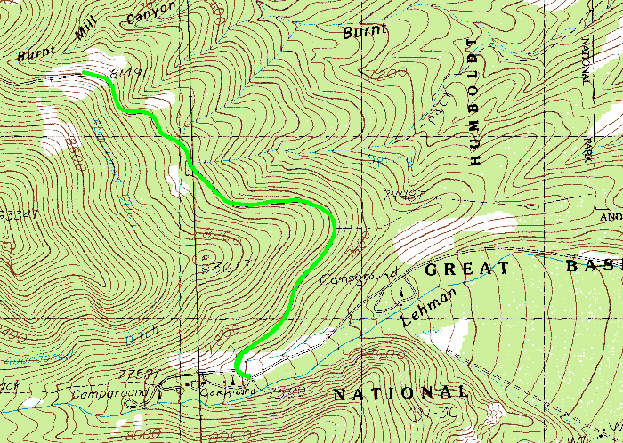 Map of Wheeler Peak Road Hike - December 28, 2006