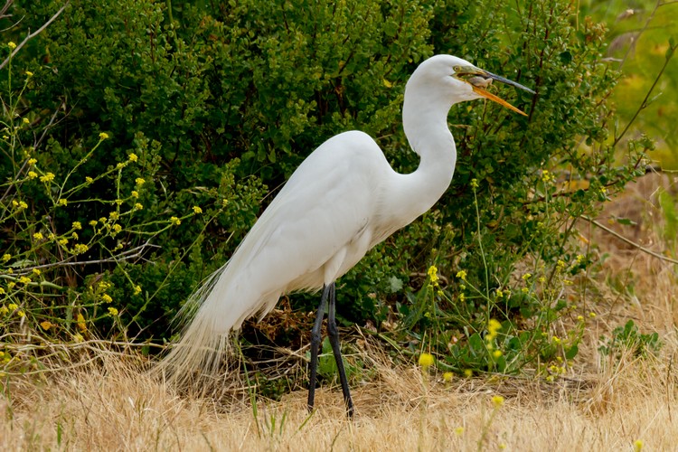 Great Egret catches prey